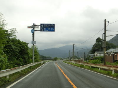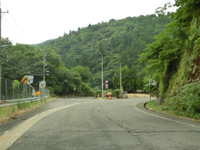 | 桜橋交差点を過ぎて6%の勾配を下っていると旧道との交差点を通過する。厳密に言えば旧道との連絡道路のような道路であり、R8の河野川橋の下を通っている道路が旧道である。R8の桜橋バイパスが供用されるまでのR305には僅かではあるがR8との重複区間があった。旧道との交差点から約3.3km先にホノケ山トンネル開通以前の分断区間の端点があったが、現在は国道の指定を外れている。2014年9月23日に旧道の途中まで走行した記録はこちらへ。 旧道との交差点を過ぎてからも上り勾配が続いている。勾配は6%だが、道路状況が良く交通量も少ないため走りにくさは感じない。河内集落との間に河野川があるせいもあって沿線の家屋は存在しない。 |