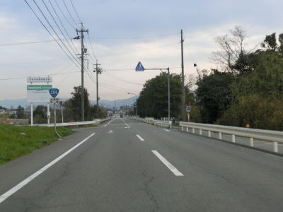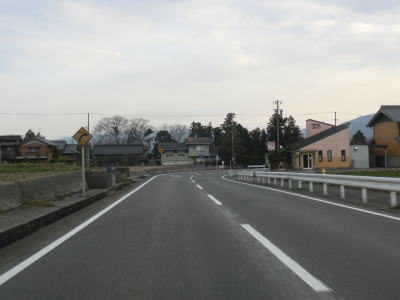 | R477菰野交差点を通過すると咲き始めの桜並木を通り、三滝川に架かる菰野大橋を渡って菰野町役場の前を通過する。町役場自体が市街地から少し離れた位置にあるため、町役場付近も走りやすい快走路となっている。その後は平坦かつ直線的な2車線道路を淡々と北に向かって走る。朝明川に架かる新奥郷橋の前後はカーブしているが、さほど急なものではないため難なく通過できる。 | ||