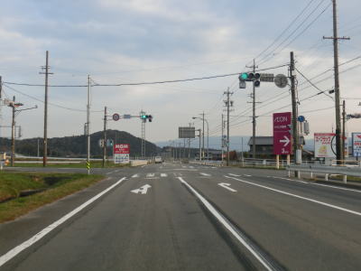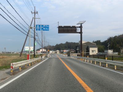 | 鞍掛峠の道路状況について表示された電光掲示板を通過して程なくして藤原大橋を渡り、右にカーブしながら三重r614下野尻交差点を通過する。その後も多少のアップダウンはあるものの非常に走りやすい2車線道路が続いている。 | ||