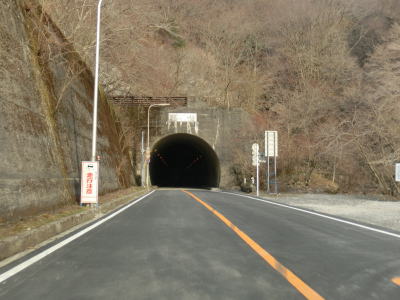 | 黄金大橋南交差点から約6.8km走ると鞍掛トンネルに到着する。トンネル手前の右側には砂利の駐車スペースが設けられており、登山道があるため行楽シーズンであれば駐車車両も見られる。 トンネルを出た左側にも砂利の駐車スペースが設けられており、こちらも三重県側同様に行楽シーズンを中心に駐車車両がある。鞍掛トンネルの少し北にある鞍掛峠が県境であり、トンネル以西は滋賀県多賀町である。 |