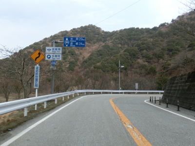 | 左のヘアピンカーブを通過すると進行方角が三重県のある東になり、カーブの多い2車線道路を走っていると右のヘアピンカーブを通過して進行方向を再び西に戻す。右ヘアピンカーブからは犬上川に沿って走る。 | ||