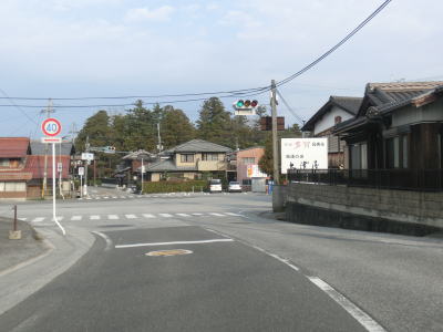| 多賀交差点からはR307との重複区間となるが、起点の外町交差点まで全て重複しておりR307の実質的な起点は多賀交差点と言える。多賀大社の東を走り滋賀r224との多賀北交差点を通過する。近江鉄道の多賀大社前駅とは少し離れているが、町役場も近く沿線の建物も多い。大きく左にカーブしている場所で滋賀r17との信号機のない交差点を通過する。田畑と家屋が混在する中を走っていると滋賀r330交差点を通過し、その先で市町境を越えて彦根市に入り、その後すぐに名神の下をくぐる。 | ||