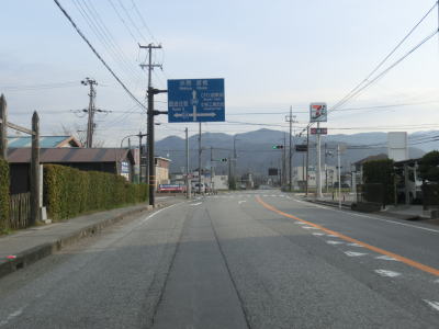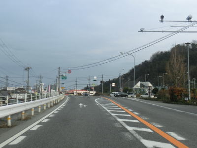 | 彦根市に入ってからも家屋が点在する中の2車線道路を走る。彦根市の市街地に向かっているため交通量は増えているが、流れが悪くなるほどではない。市道との野田山町交差点を道なりに右に進み、緩やかな勾配を下る。 | ||