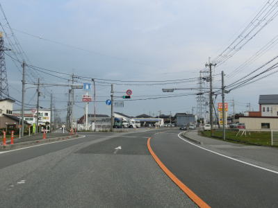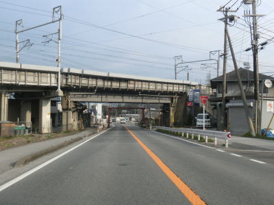 | 徐々に交通量が増えている2車線道路を走っていると東海道新幹線の高架をくぐる。高架には4.3mの制限高が設けられており、前後に金属製の制限高バーが設けられている。滋賀r528正法寺町交差点を通過して少し走ると名神の彦根ICとの原町交差点を通過する。 | ||