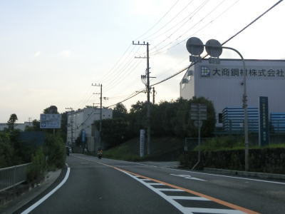 | 府境を前にして下り勾配になり、その途中で大阪r71交差点を通過する。このr71も旧道の一部である。前述のとおり、旧道の一部区間に一日の内2時間だけとはいえ大型車両禁止規制が敷かれているが、交通量が多く、特に杉1交差点は渋滞しやすい交差点である。 r71交差点からは上り勾配となり引き続き左カーブを走っていると京都府京田辺市に入る。周辺には建物が多く府境感は薄いと言いたいところだが、通常の家屋ではなく工場や倉庫が中心である。 |