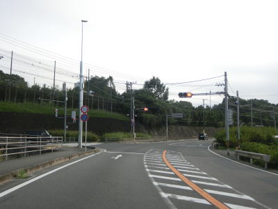 | 津田北町3交差点のすぐ先で大阪r17杉1交差点を通過するが、右折方向の市道はR307の旧道である。旧道はセンターライン付きの2車線道路ながら車線幅が狭い事もあって7〜9時の間は大型車両通行禁止規制が敷かれている。 直進してバイパスへと進むと上り勾配となる。ゆずりゾーンが設置されているが、距離が短いせいもあって利用率は低く駐停車している車両もよく見られる。上り勾配のまま大きく右にカーブする。 |