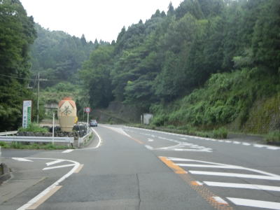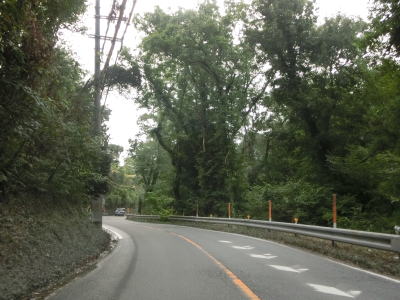 | 町の中心部を過ぎて沿線の家屋が少なくなる。宇治田原工業団地の出入口の交差点で右折する車両が多かったため以降の交通量は少なくなる。町道とのY字路を道なりに左方向へと進むと歩道がなくなり山道区間に入る。山道と言っても人里離れた場所ではなく家屋はほとんどないものの茶畑がある。 | ||