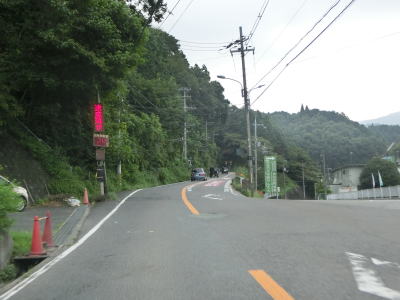 | 歩道なし区間はバイパスが建設中であり、開通すれば歩道のある2車線道路になる可能性が高く、大型トラックの通行がより楽になるだろう。バイパス接続予定地点を過ぎると片側だけとは言え歩道が設置されているため走りやすくなる。峠部分を越えると宇治田原町に入るが、市町境に京都r62との交差点がある。交差点からは緩やかな勾配を下って行く。 | ||