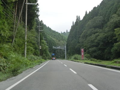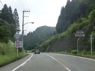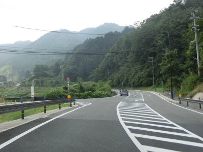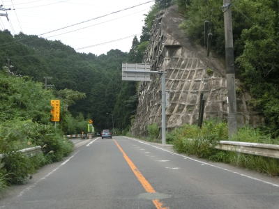| 旧道と合流してからも2車線道路が続いており決して走りにくさを感じる道路状況ではない。青谷川の緩やかな勾配を上っていると歩道がなくなるが、その辺りからカーブが多くなる。乗用車であればさほど走りにくいとは思わないが、大型トラックだとセンターラインをはみ出でてしまうなど気を遣う走行となるだろう。 | ||
