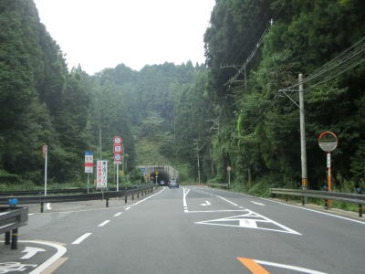 | 左カーブの先で大福隧道をくぐるが、トンネル内部はセンターラインが引かれておらず3.8mの制限高が設定されており、大型車両同士の離合は困難である。大福隧道を出て大きく右にカーブした後に旧道との交差点を通過して奥山田トンネルに入る。このトンネルを含む奥山田バイパスは歩行者と自転車、軽車両の通行が禁止されている。そのせいか旧道も国道に指定されたままである。 | ||