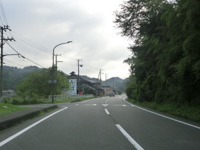| 下朝宮交差点からはR422との重複区間となるが、道路状況と風景に変化はなく走りやすい2車線道路が続いている。信楽川の流域を走っているが、線形は改良されており忠実に川に沿っている訳ではない。朝宮茶の産地らしく沿線には茶葉の販売所がいくつか建っている。一般の家屋は少ないが旧道と思われる市道沿いに建っている。 | ||