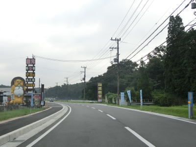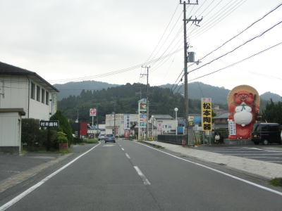 | 沿線の建物が途切れると緩やかな上り勾配となり峠部分を越えると下りに転ずる。谷筋を出て視界が開けた所で滋賀r5交差点を通過する。r5交差点以東は沿線には茶葉の販売所に代わって信楽焼の販売所が多くなる。信楽焼と言えばたぬきの置物で有名なやつである。 | ||