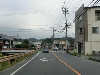 | 深山口交差点以北は片側だけとはいえ歩道が設置されている。アップダウンしている2車線道路を走っているとしゃくなげ街道との木津交差点を通過して日野川に架かる木津大橋を渡る。 | ||