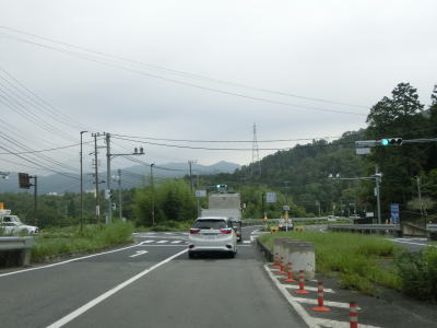 | 左にカーブしている山川橋を渡った先でR307現道・滋賀r549山川橋交差点に至る。直進が日野水口グリーンバイパスを含むバイパスで左折の水口市街方面が現道である。前回(2014年)は現道を走行したが、今回は直進してバイパスへと進んでいる。 山川橋交差点からは野洲川の流域を離れて緩やかな勾配を上る。城山中学校の東側を通り過ぎた先でR1中畑交差点を通過する。この区間のR1は水口バイパスと呼ばれる区間であり、先ほど交差したr549が旧道に当たる。 |