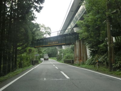 | 紫香楽宮跡駅を過ぎて少し走るとE1A新名神の信楽ICを通過する。インターチェンジの前後は中央分離帯が設置されている。通常の対面2車線道路に戻った後に信楽高原鉄道とともに右にカーブしてE1A新名神の隼人川橋の下をくぐる。E1A新名神と並走していると信楽高原鉄道の橋梁の下をくぐる。 | ||
