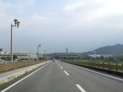 | 木津大橋を渡って少し走るとR307現道との日田交差点を通過する。山川橋交差点からの距離は約7.9kmであり、現道経由だと約9.2kmである。有料道路区間内にも平面の交差点があるため有料道路らしからぬ状態であった。また、狭路ながら料金所をパスできる道路が存在したのも料金収入が伸び悩んだ要因のひとつかもしれない。 | ||