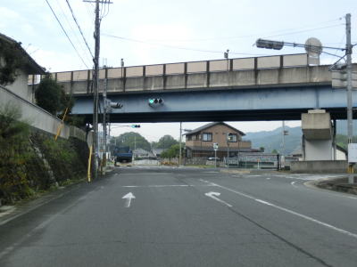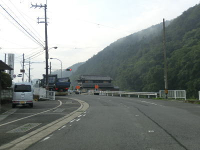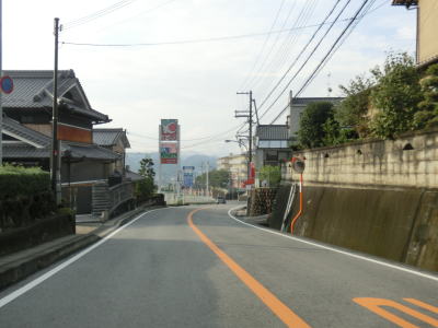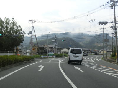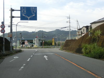 | 大淀町の市街地の北西で町道との車坂峠交差点を右折して天川・下市方面に進む。右折車線がないため右折車両が多ければ流れが悪くなる事がある。また、市道に進めば大淀町市街地の北部を通ってR169に行けるためか、直進する車も多い。 車坂峠交差点からも下り勾配が続いており和歌山県地場のスーパーマーケットの前を通過した先で現道との交差点に至る。水越トンネルと戸毛バイパスは現道へ進んだが、この区間は直進してバイパスへ進んでいる。理由はウォッちずでは国道色に塗られているが、おにぎりが残っていないからである。 |