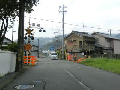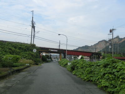 | 舗装の凹凸が多い1.5車線狭路を走っていると沿線の家屋がなくなるが道幅は狭いままである。3.6mの制限高が設けられた近鉄吉野線のガードをくぐり、曽我川の右岸を走る。JR和歌山線と近鉄吉野線の吉野口駅の真東で奈良r215との交差点を通過するが、南下の場合は案内標識が設置されていない。 | ||