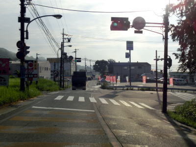 | 大淀病院西交差点を左折して吉野警察署の前を通過し、約250m進み十字形状の交差点は右折しなければならない。左折の道路がR309の現道であり、案内標識には意外にも御所と書かれている。 | ||