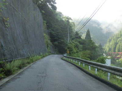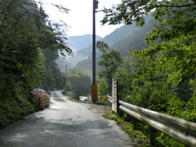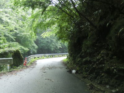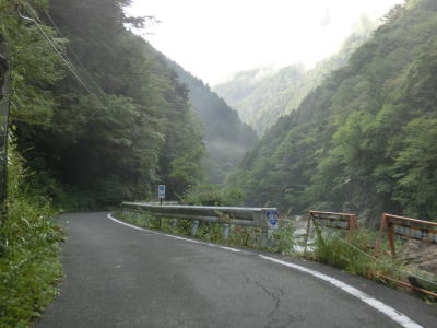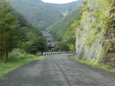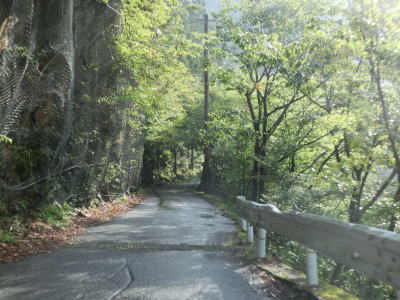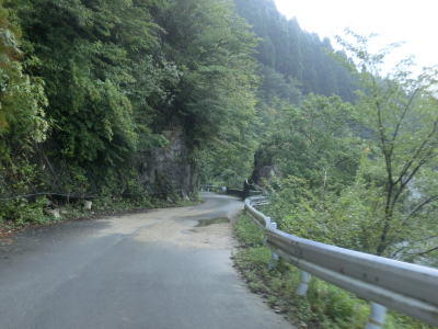 | 道幅は1.5車線程と狭く落石も至る所で散らばっており気を遣った走行を強いられる。落石だけでなく舗装の凹凸も多く、特に橋の前後は段差が生じてしまっている。谷筋を走っているとは言え徐々に標高が上がっているせいか日が当たる場所が多い。 | ||