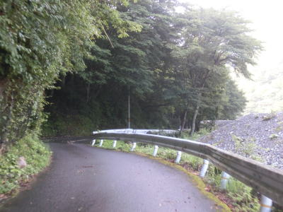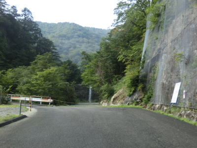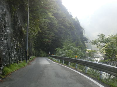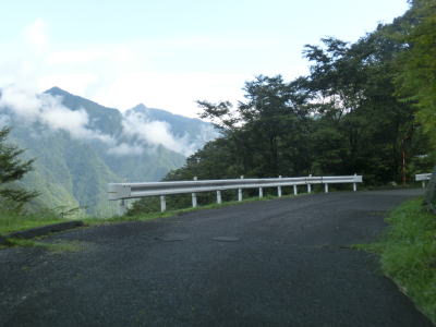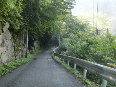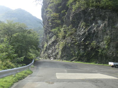 | いくつもの砂防ダムが造られた布引谷川を左にカーブしながら渡り、トラバースするように北東の方角に進む。相変わらず道幅は狭く路面状況も悪いが、時折視界が開ける場所を通る。落ちたら死ぬような場所だが一応ガードレールが設置されている。 | ||