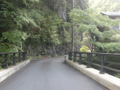 | 北角集落を通り過ぎてからは川迫川に沿った狭路を走る。川と言っても大きな岩が多く渓流という感じである。ハイカーが歩いている狭路を走っていると対岸の遊歩道につながっている人道橋が架かっているが、何らかの理由で通行止になっている模様。その後も1.5車線山岳狭路を走っているとレストランみたらいを通過する。御手洗渓谷観光の拠点となる場所で山間部にありながら賑わっている事も少なくない。 | ||