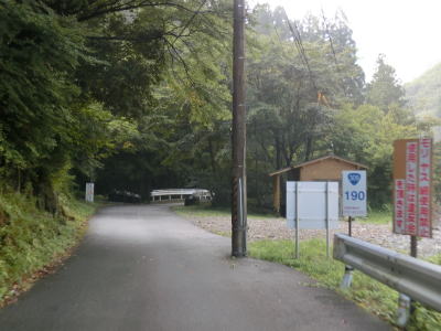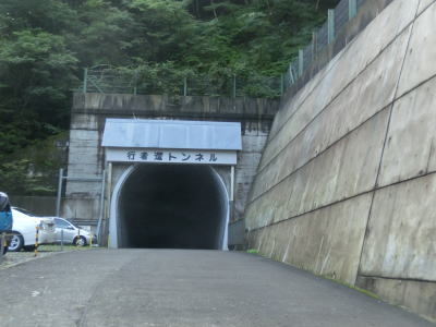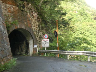 | 行者還トンネルに近付くと舗装はされていないものの乗用車数十台が停められるスペースがいくつかある。熊野古道が世界遺産に登録されたため観光客が増大しており、通常であれば見向きもされないようなスペースを駐車場としており、こんな人里離れた山間部にもかかわらず料金を徴収されるようだ。乗用車で1日1000円という場所を考えると高額に思えるが、観光地価格と考えれば納得できない金額でもない。 左にカーブして小坪谷を渡ると奥に行者還トンネルが見える。手前の左側にも有料駐車場と化した駐車スペースがあり、プレハブ小屋と工事現場にあるような簡易トイレが設置されている。手前の駐車場の料金はここで支払うのだろう。なお、トンネルの手前には熊野古道の大峰奥駆道、弥山山登山口が接続しており、駐車場もそれらを目当てにした登山客向けのものである。 道路構造物である行者還トンネルに目を向けると断面の形状はごく普通で何の変哲もないトンネルに見えるが、名称が書かれている部分はシャッターの収納場所であり、冬季閉鎖時にはシャッターが閉ざされる構造である。以前は手前左側に車両通行止の規制標識と冬季閉鎖期間を示した補助標識が立っていたのだがなくなっていた。トンネルの全長は1151mで内部に照明は設置されていないが直線のため対向車に気付くのは容易である。幅は広いとは言えないが乗用車同士であればすれ違えない事もない。 |