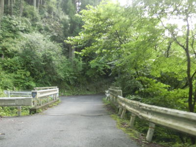| 勾配のほとんどない平坦な狭路をひたすら走る。走行した日は直前まで雨が降っていたせいか対向車にも遭遇しないし、追い付いたり追い抜かれたりする事もなかったが、釣り客と思しき駐車車両は何台か停まっていた。奈良r21交差点から約3.7kmで双門の滝を通過するが、地図には記載されているもののどこにあるかは確認できなかった。滝があるらしい場所の近くで川迫川に車両が通行できる橋が架かっているが、チェーンが張られているため一般車は進入できない。 | ||