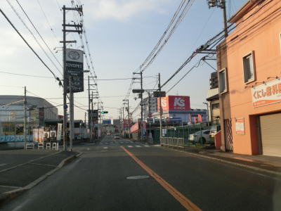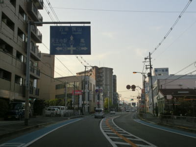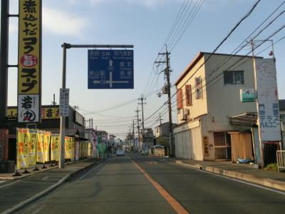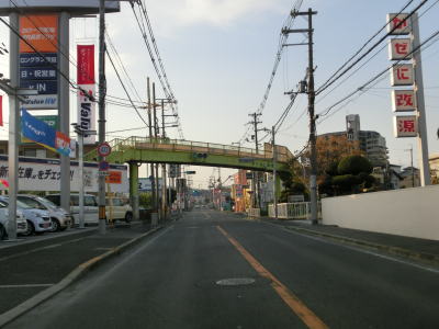 | 本町七つ辻交差点からはR170の現道との重複区間となるが、道路状況としては対面2車線とこれまでと同じである。ただ、沿線に店舗兼家屋が密集しており車線幅に余裕はない。約200m走ると南海高野線と近鉄長野線の河内長野駅の前を左にカーブする。河内長野駅前からも対面2車線道路が続いているが、歩道がなくさらに狭苦しく感じられる。 | ||