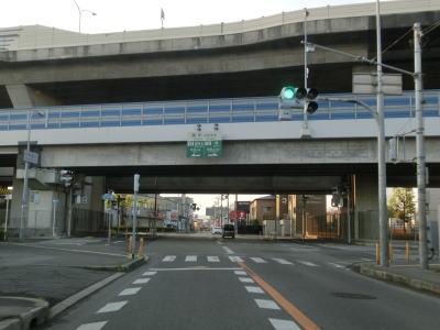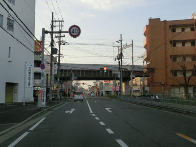 | 狭苦しい2車線道路を走っていると右に直角にカーブし、その直後に南海高野線のガードをくぐる。ガードのすぐ先には近鉄長野線のガードがあり、その間がR170菊水町交差点である。交差点を直進する事でR170から分岐して奈良・五條方面へ進む。なお、南海のガードには3.7m、近鉄のガードには4.0mの桁下制限高が設定されている。 | ||