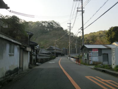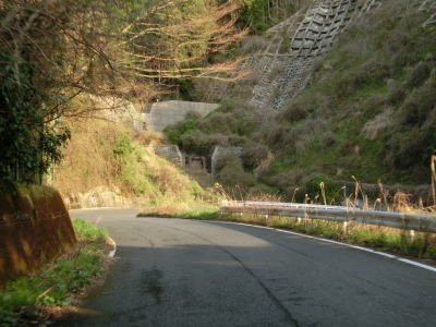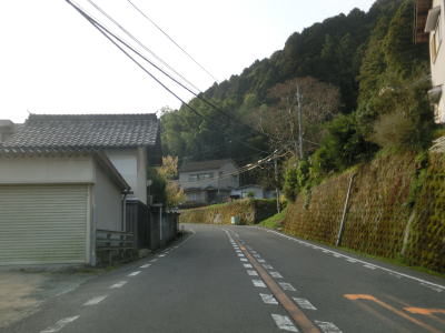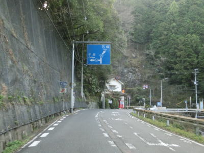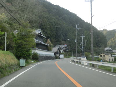 | 石見川沿いの谷筋のカーブの多い2車線道路を走っていると行者湧水販売所の前を通る。さらに進むと石見川集落を通り抜けるが、この集落が大阪府側の最後の集落である。最期の集落とは言えその規模は比較的大きく空き家が目立つという事もない。 | ||