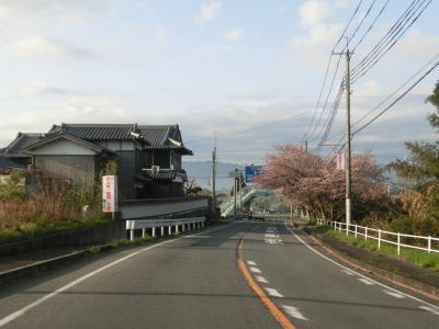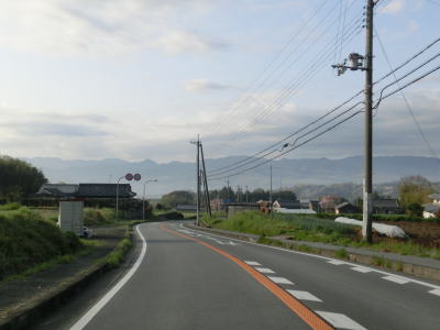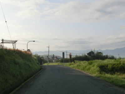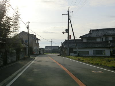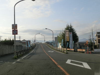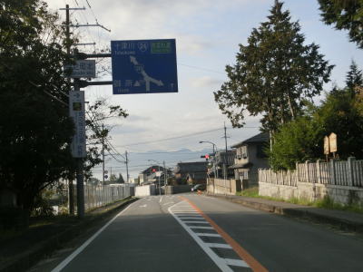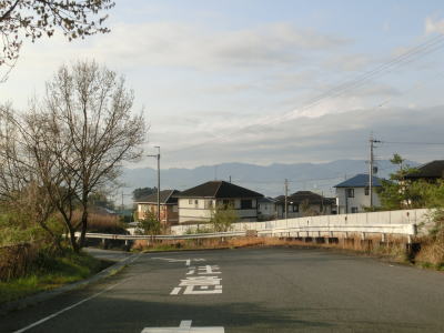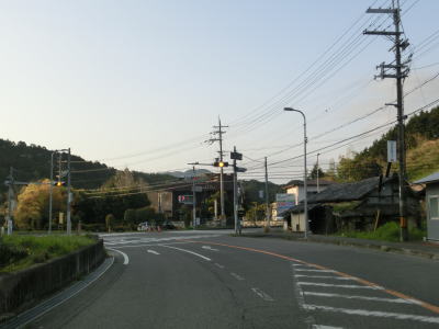 | 緩やかな勾配を上っていると景色が開けると同時に集落に差し掛かる。市道との交差点からはセンターライン付きの2車線道路になる。この市道を北上すると養鶏場(?)付近でR310との交差点に出る。 2車線道路になってからは下り勾配をなり、程なくして牧野小学校前交差点を通過する。交差しているのは市道だが住宅地を通り抜ける道路のため、対面2車線に歩道付きとよく整備されている。牧野小学校前交差点からも下り勾配が続いているが、カーブは緩やかで見通しが良いため非常に走りやすい。 |