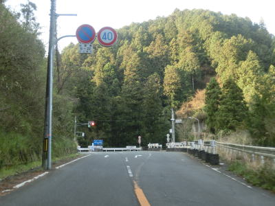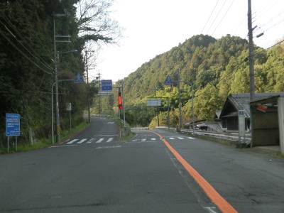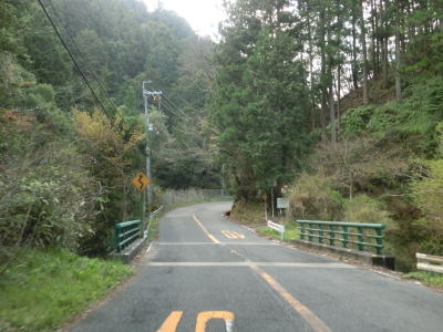 | いくつか急カーブを曲がった後に住宅地との道路が交差している箇所があるが、ガードレールが置かれており行き来する事はできない。ガードレールが置かれているのは住宅地側の要望なのか、それともR310の管理者である県の意向なのかは不明である。 通れない交差点を過ぎると左にカーブしながら勾配を下り、細谷川の右岸を走った後に右のヘアピンカーブを曲がって今度は左岸を走る。住宅地に近い場所だが、それを思わせないような風景である。 |