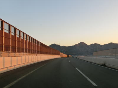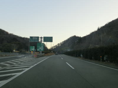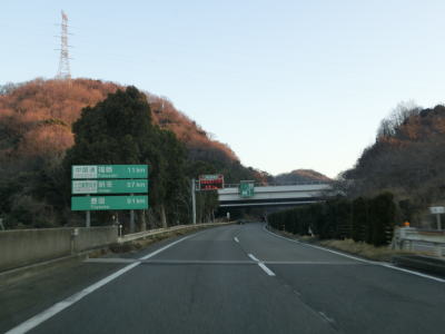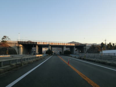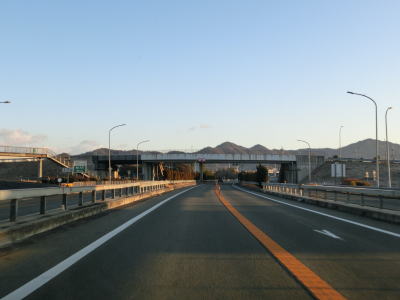 | 大塩別所ランプからの勾配を上っていると南山跨道橋で兵庫r399の上を通過し、次いで新幹線大橋を通る。名称が示す通り、山陽新幹線の上を跨いでいるが、他にもJR山陽本線やR2現道も跨いでいる。緩やかな左カーブを曲がり、高架橋区間を走る。 | ||