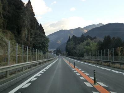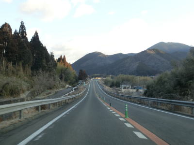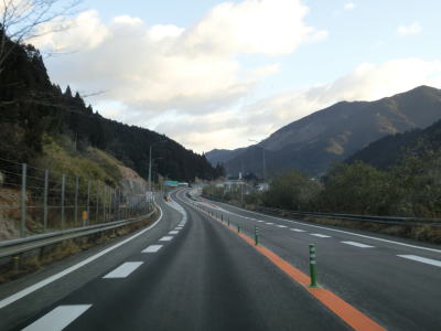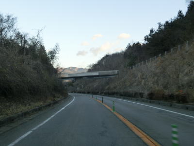 | 右急カーブからは現道と並走するようにして市川の左岸を走る。3ヶ所で現道の上を通っているが、どれも接続していないので播但道を走っていれば特に意識する事もないだろう。川沿いとは言え南に向かって上り勾配となっているため、南向き車線には1km強の登坂車線が設けられている。反対側車線の登坂車線が終わってからも緩やかな下り勾配が続いている。 | ||
