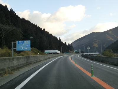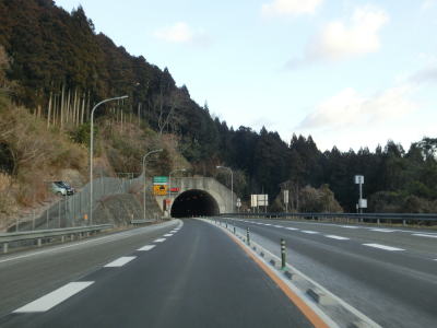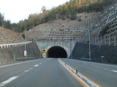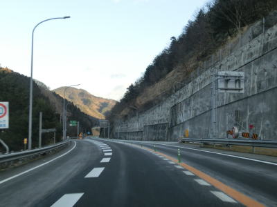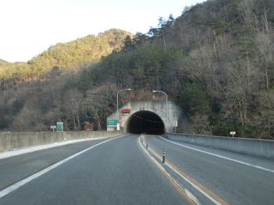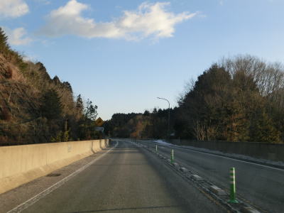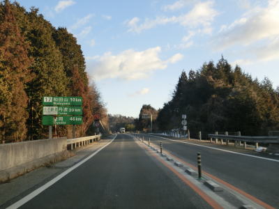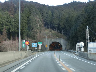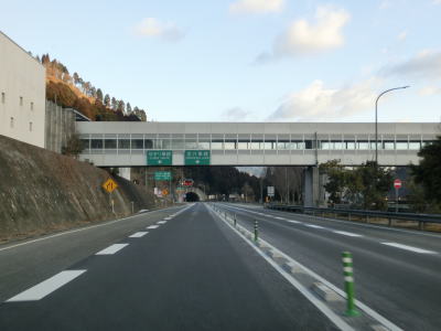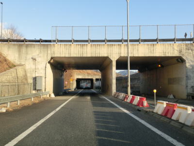 | R429の上を通過し、朝来ICの流入車線とともに朝来第5トンネルに入る。流入車線はトンネル坑口から2,30m中に入っている。右にカーブしている朝来第5トンネルを出ると次の朝来第6トンネルに入る。朝来ICからは緩やかながら長い上り勾配だが、トンネルがあるせいか登坂車線は設置されてない。 | ||