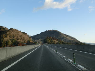 | 和田山本線料金からは緩やかな上り勾配となって大路橋を渡る。前方の山頂に人工物が見えるが、これは雲海に浮かぶ威容で有名になった竹田城の石垣である。大路橋を渡り終えると登坂車線が現れる。竹田城跡の麓付近で和田山PAが設置されているが、南向き車線のみで北向き車線には設置されてない。登坂車線が終わると城山トンネルをくぐる。 | ||