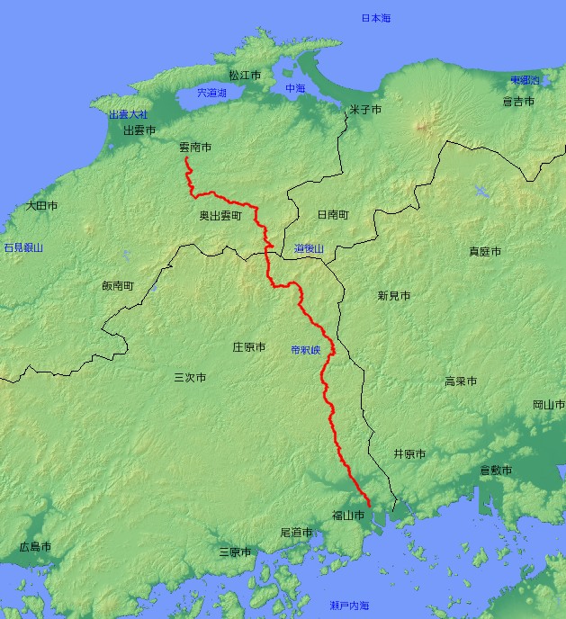 | 主な経由地 | 広島県福山市〜神石高原町〜庄原市〜 〜島根県奥出雲町〜雲南市 |