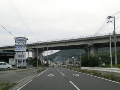 | 広島r379広尾交差点を通過して左にカーブした後に山陽道の福山東ICを通過する。航空写真を一見しただけでは信号機を介さないインターチェンジに見えるが、R182神辺方面からの入口を除いて信号機があるか、一旦停止しなければならない。流出入路の下を通ると右にカーブして上り勾配を走る。 | ||