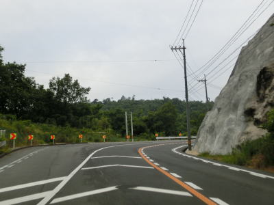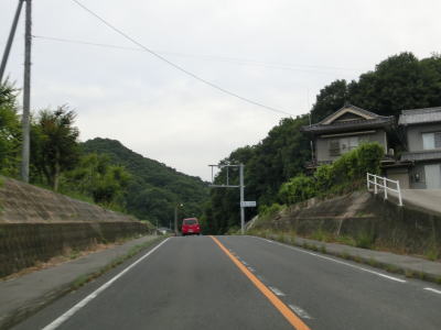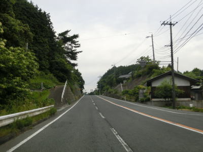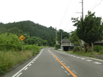 | 登坂車線が終わってすぐに次の集落である犬塚集落に入る。集落内で6%勾配を下った後に6.2%勾配を上る。アップダウンの多い2車線道路だが、交通量は非常に少ないせいもあって勾配の割に走りにくさは感じない。 | ||