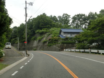 | 三曲橋以降もカーブの多い状態が続いている。百谷川の左岸を走っているが、川との高低差があるため川面は見えず川に沿って走っているというイメージは感じられない。2ヶ所目の登坂車線が現れて、その状態で高山集落を走り抜ける。この登坂車線の距離は約500mである。 | ||