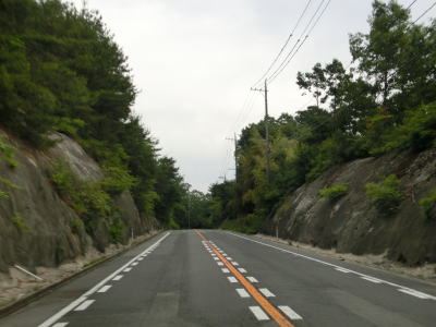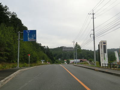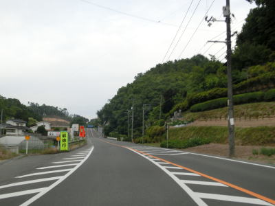 | 姫谷集落を出る直前に登坂車線が現れる。この登坂車線の距離は1.3km程あり、終わる地点で市町境を越えて神石高原町に入る。ただ、厳密に言えば市町境はもう少し北にあり、道路上に境が重なっている箇所もある。正式(?)な市町境の手前に別荘地らしきものがあるが、雑草が生い茂っており生活感が感じられなかった。 | ||