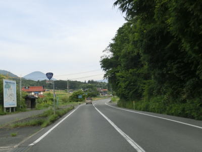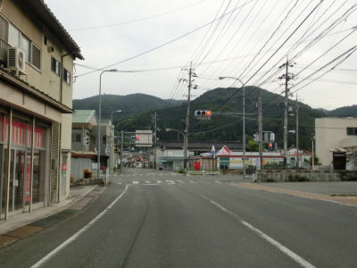 | 緩やかな勾配を上っていると狐峠を越えて下りに転ずるが、北側の勾配も緩やかで走りやすい。長い勾配を下っていると視界が開けて前方に集落が見えてくる。一時的に離れていたJR芸備線の小奴可駅を中心にした集落である。 | ||