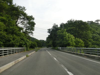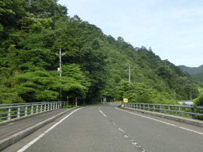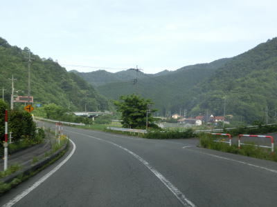 | 直角カーブからは市街地の西の山裾を走っており、車線幅が広く走りやすい道路状況である。緩やかなアップダウンを繰り返しながら成羽川右岸の山裾を快走する。左岸にはJR芸備線が走っており、しばらく並走状態となる。 | ||