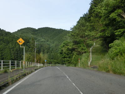 | 中央分水嶺の峠を越えると緩やかな勾配を下って行く。R314はそのまま西に、JR芸備線は北に向うためそれぞれ離れた場所を走るようになる。下高尾集落からは高尾川の谷筋を走っているが、道路状況としては非常に走りやすい。高尾集落を過ぎると7%とやや急な勾配を下るが走りにくさはほとんど感じない。 | ||