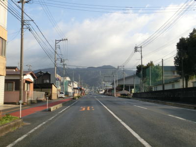 | 景色が開けて家屋が見えてきた所で大きく右にカーブする。その後も下り勾配が続いており、左カーブを曲がった先でR9長沢交差点に至る。旧阿東町の中心部の南西に当たり、益田・津和野方面に約6.8km走れば島根県との県境に至る。 | ||