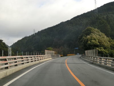 | 鹿野ICを過ぎると緩やかな勾配を上った後に緩やかに下る。錦川の左岸を走っており勾配はほとんどない。カーブが多いものの急カーブは少しだけで快走する事ができる。やや急な左カーブを曲がった先で山口r3との交差点を通過する。信号機のない交差点で案内標識にヘキサが表記されてないため、県道が交差しているようには見えない交差点である。 | ||