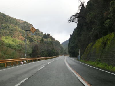 | 大潮トンネルを過ぎてから緩やかな勾配を上っていると河内峠を越えて山口市に入る。峠の標高は585mでR315で最高地点である事を示す看板が立てられている。峠を越えてからは下りとなるが勾配は比較的緩やかである。 | ||