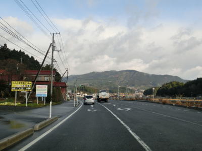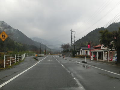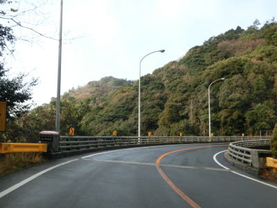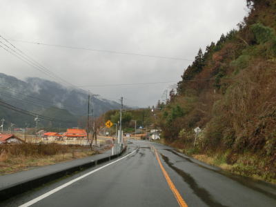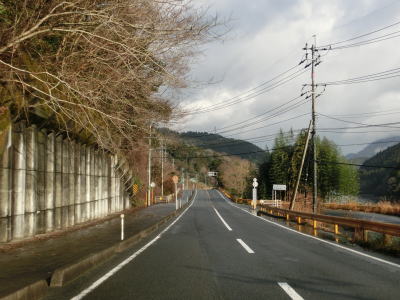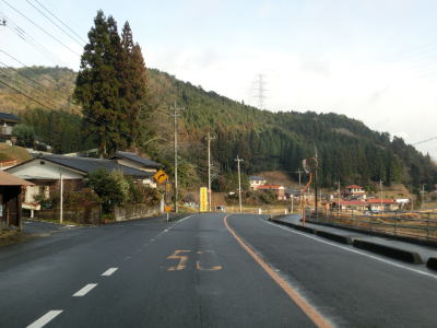 | ループからしばらくは直線的な状態が続いており走りやすいが、集落に入る直前で右の急カーブを曲がり、沿線に家屋が現れた所で左のヘアピンカーブを曲がる。ヘアピンから少し進むと勾配は落ち着き、佐波川の左岸の山裾を走る。 | ||