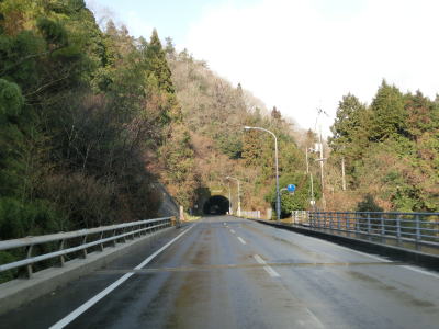 | 山口r3が分岐してからも錦川左岸の2車線快走路が続く。戸根橋を渡って錦川の右岸に移ると左にカーブして進行方角を西に向けた後に山口r26交差点を通過する。この交差点もr3と同様に県道が交差しているように見えない。r26交差点からは右にカーブして錦川を2回渡ってから大潮トンネルをくぐる。 | ||